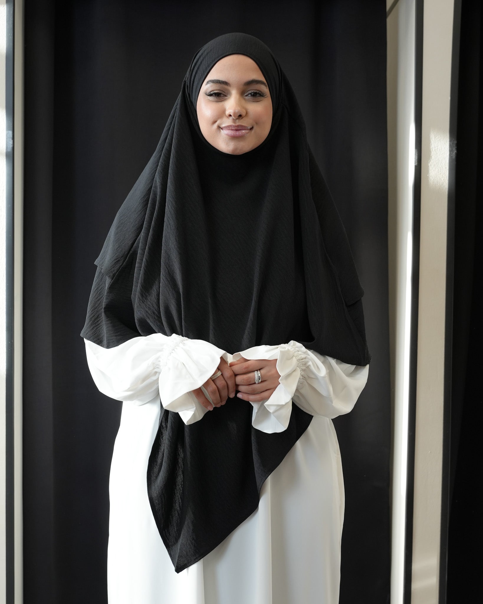 Unser zweilagiger Khimar ist ein absoluter Basic unter den Muslimas und sollte auch bei dir nicht fehlen, denn dieser passt nahezu zu allen Kleidungsstücken.